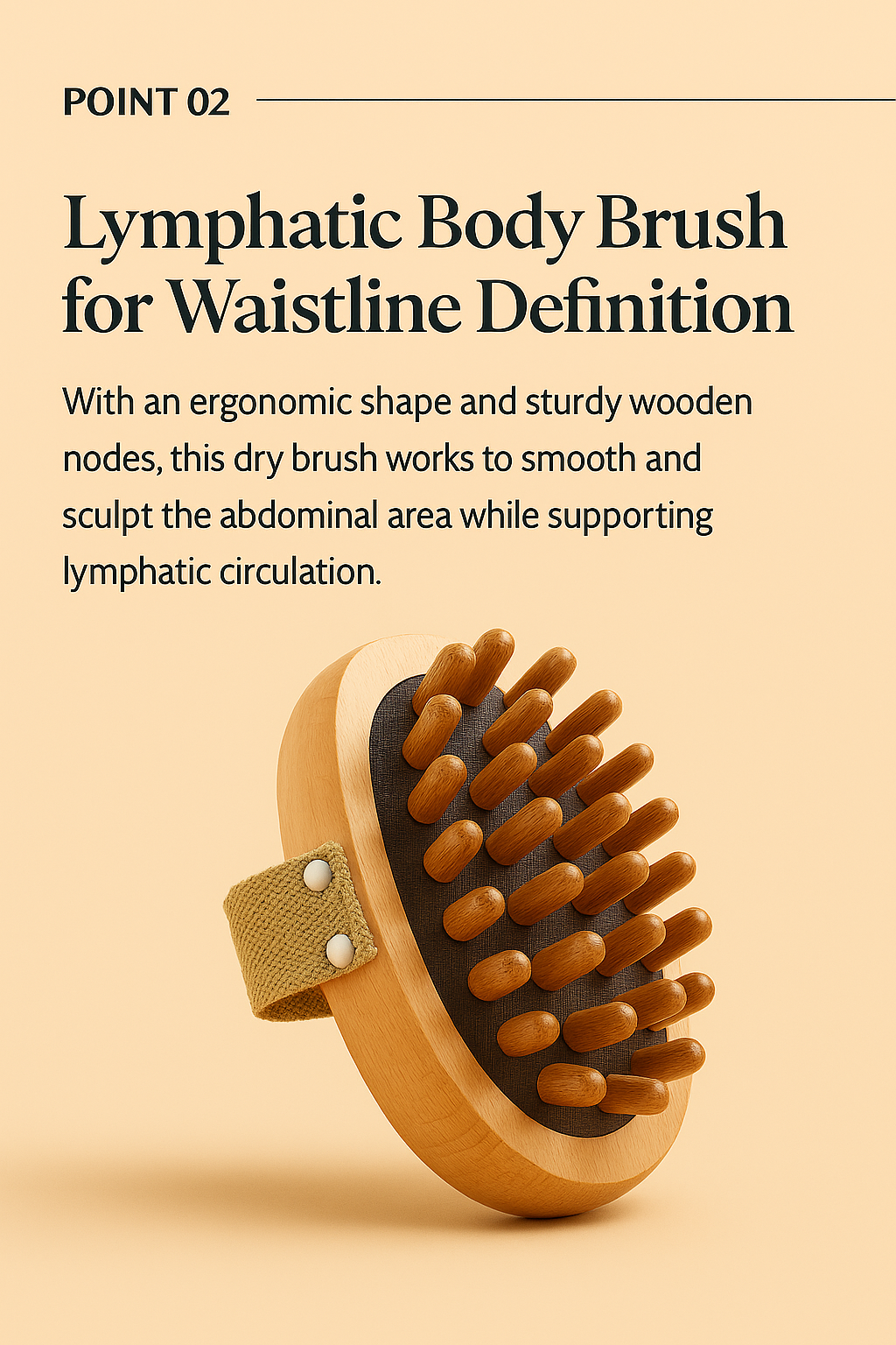 It gently stimulates the skin with precision rounded wooden nodes that activate lymphatic flow and circulation across the body. Together, these actions reduce water retention, relieve body tension, and smooth the skin’s surface, helping define your natural curves and contours.