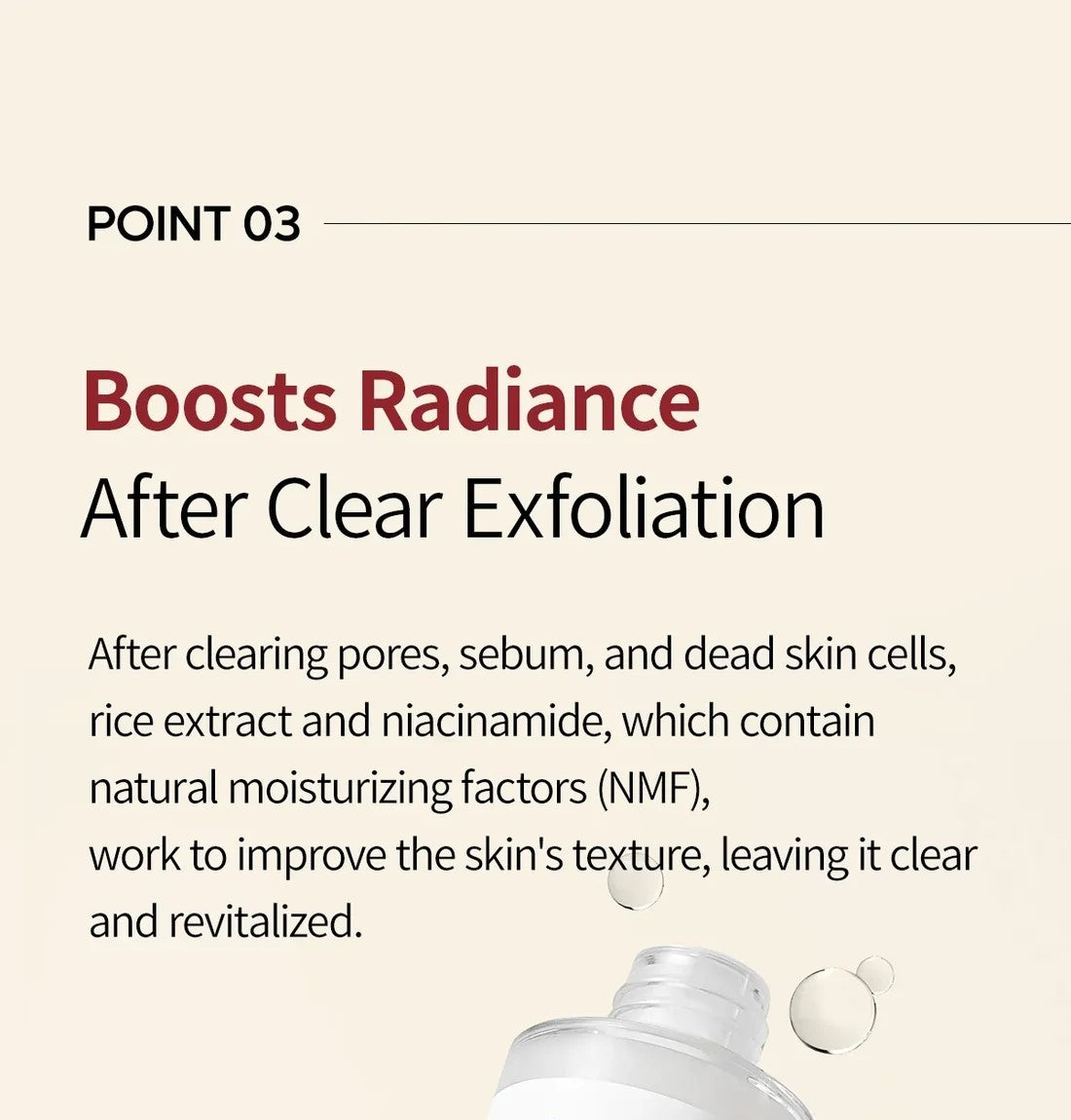 A: Unlike harsh scrubs or chemical peels, our formula uses rice bran water + niacinamide to gently resurface your skin. That means you get visible improvements in smoothness, blackheads, and brightness without irritation or downtime.